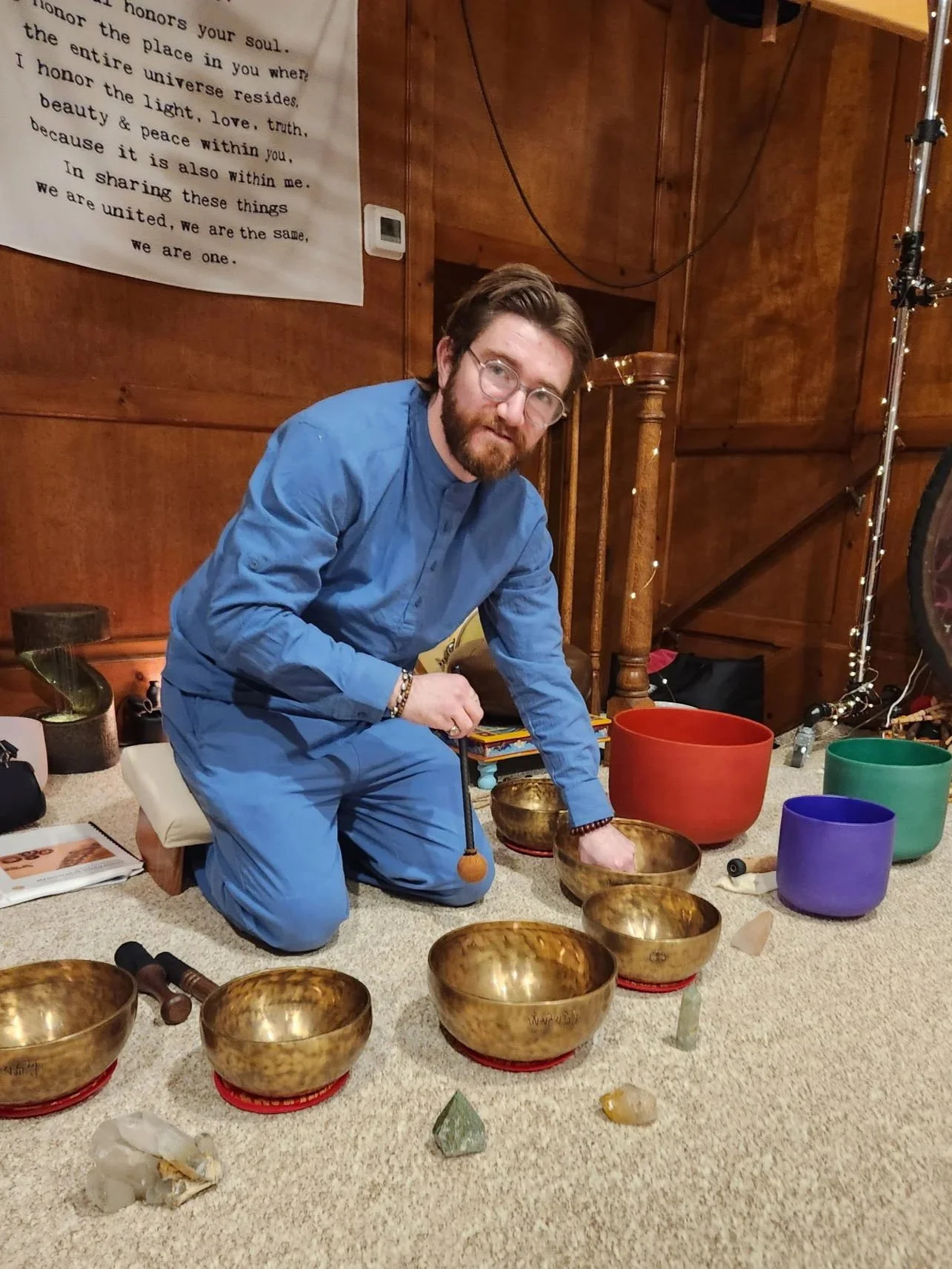 Kevin Dusenberry, the energy healer, perfroming a sound bath.